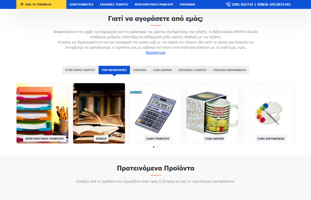 Για το Βιβλιοπωλείο Κραλλή αναλάβαμε την κατασκευή του ηλεκτρονικού καταστήματος (e-shop), τη βελτιστοποίηση SEO για καλύτερη παρουσία στις μηχανές αναζήτησης και την ένταξη των προϊόντων στην πλατφόρμα BestPrice για μεγαλύτερη προβολή και αύξηση πωλήσεων. Η συνεργασία απέφερε θετικά αποτελέσματα από τον πρώτο χρόνο λειτουργίας, με το κατάστημα να λαμβάνει και βραβείο συνεργασίας από την πλατφόρμα BestPrice.